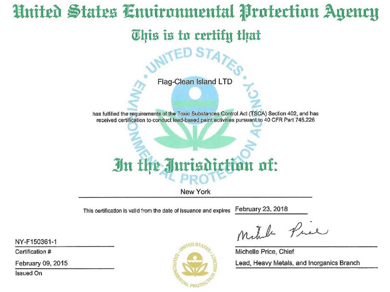 EPA Certified Lead Abatement Firm Certification # NY-F150361-1)