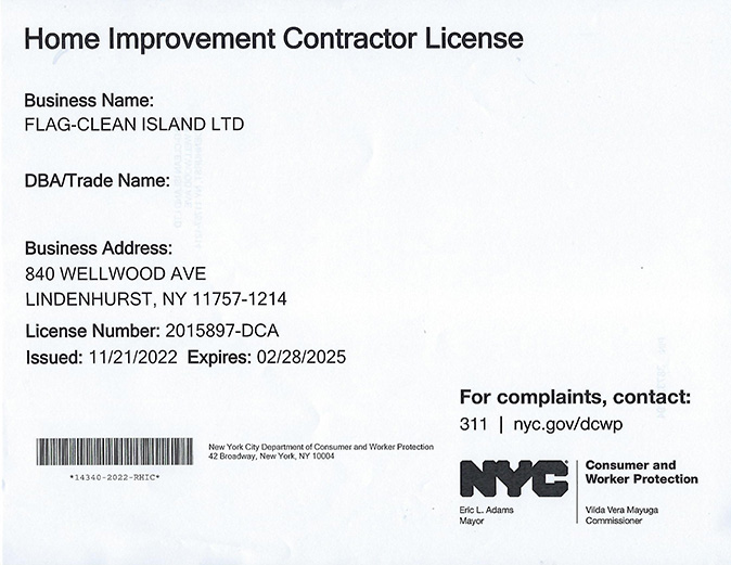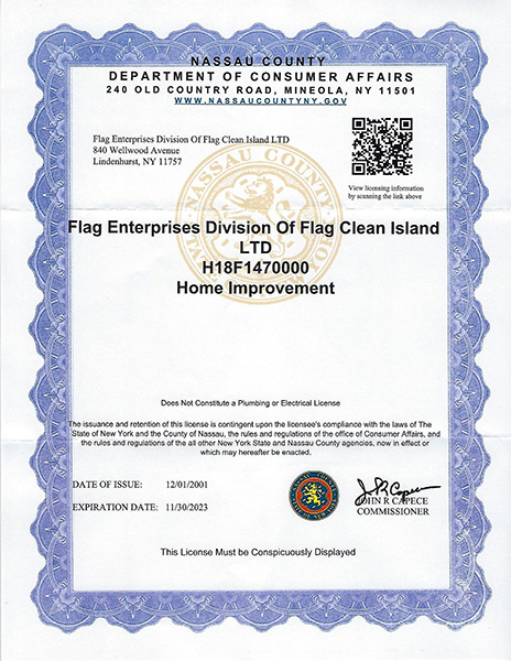 Nassau County Home Improvement Contractor License (Lic #H18F1470000)